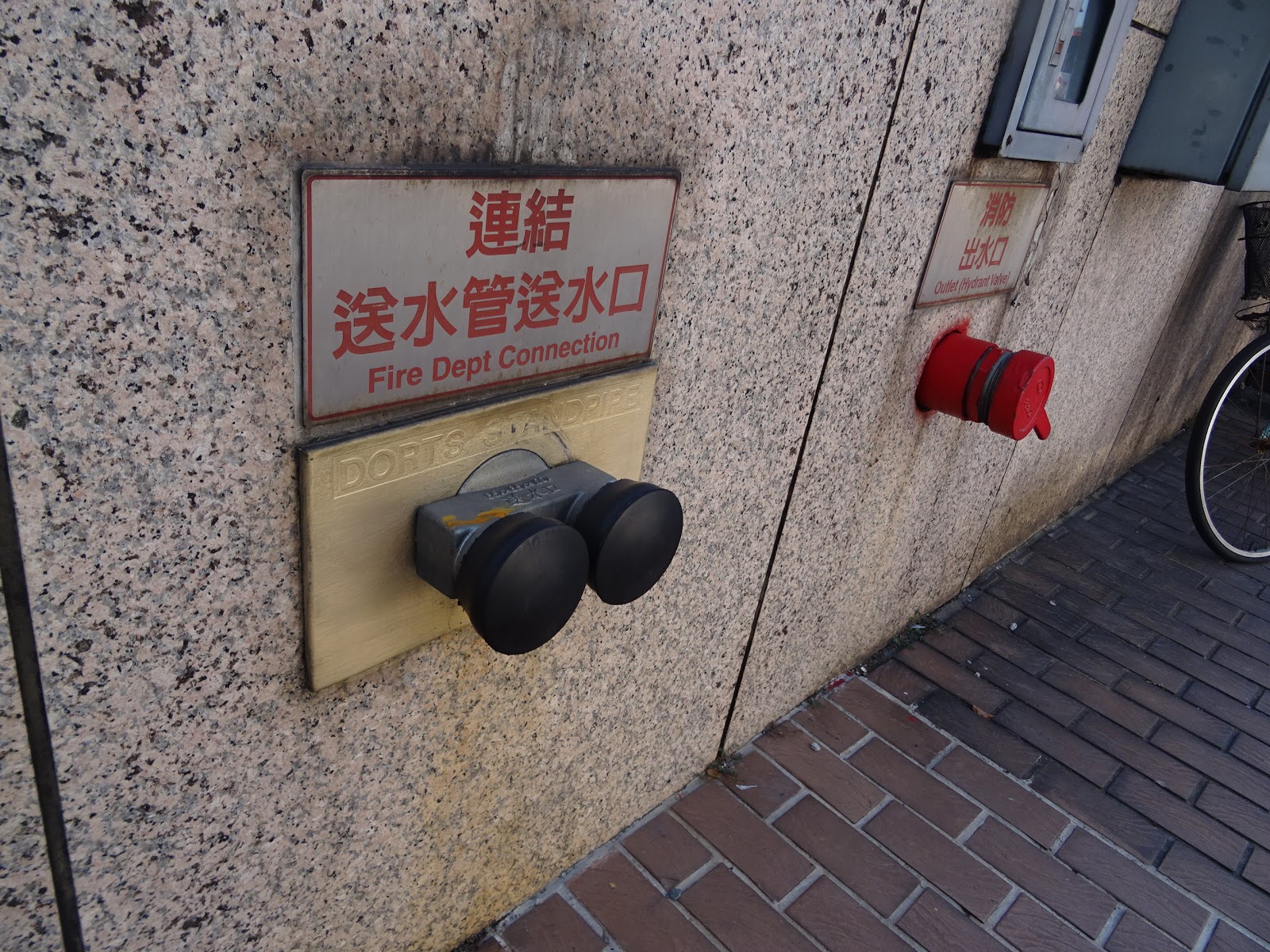 本体は「基本形A」なのですが、基本形A+のように飾り板をビル内に隠さずに設置しまい、このような可愛らしくも頼もしい送水口になったと言えます。